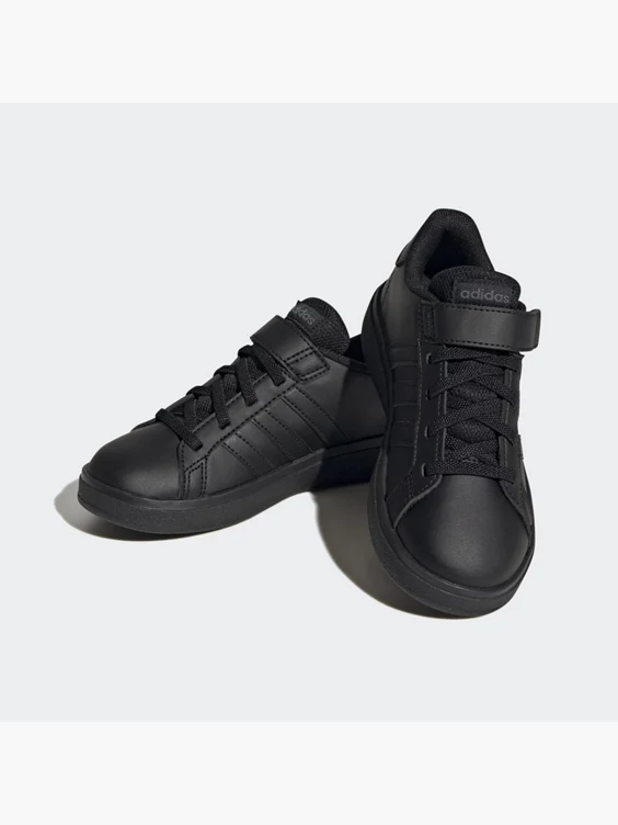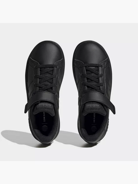 Mit einer Sneaker-Sammlung kann man gar nicht früh genug anfangen, und dieser adidas Grand Court für Kinder ist der ideale Grundstein dafür. Er kommt mit einer robusten und gleichzeitig flexiblen Gummi-Cupsohle, die deinem kleinen Sneakerhead bei jedem Schritt Halt gibt. Dank der elastischen Schnürsenkel und des Klettverschlusses über dem Spann können die Kids diesen klassischen Sneaker ohne Binden ganz einfach selbst an- und ausziehen.Mit einem Recycling-Anteil von mindestens 50 % im Obermaterial ist dieses Produkt nur eine unserer Lösungen im Kampf gegen Plastikmüll.